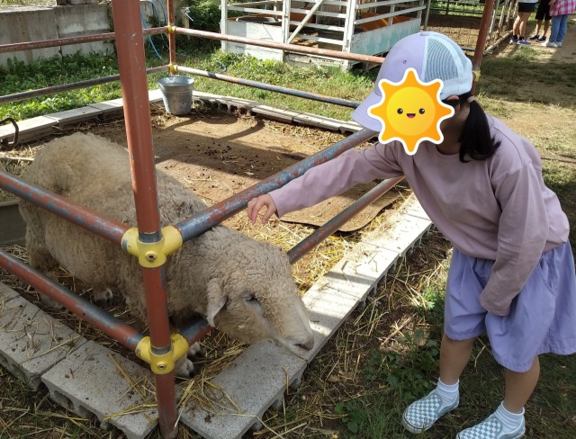餌やりの最中に羊さんに触ることもできました☆ぎっしりのモフモフでした♪
