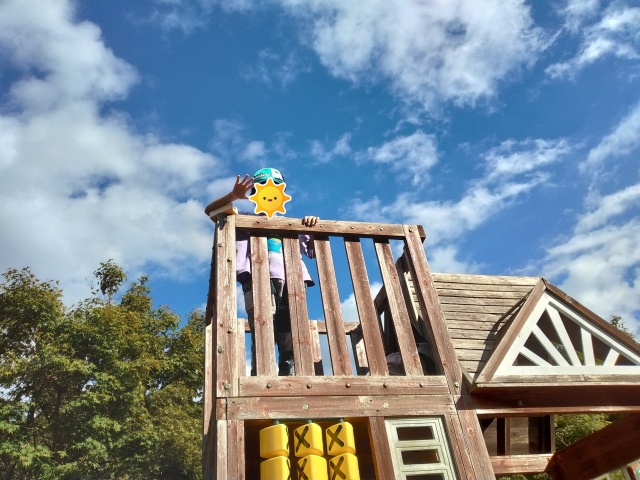 大きなすべり台とブランコのあるアスレチックにて☆いい天気で良かったね☆