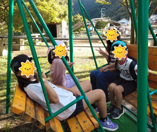 餌やり体験の後は牧場にある遊具で遊びました☆向かい合わせの大きなブランコに大喜びしておりました♡
