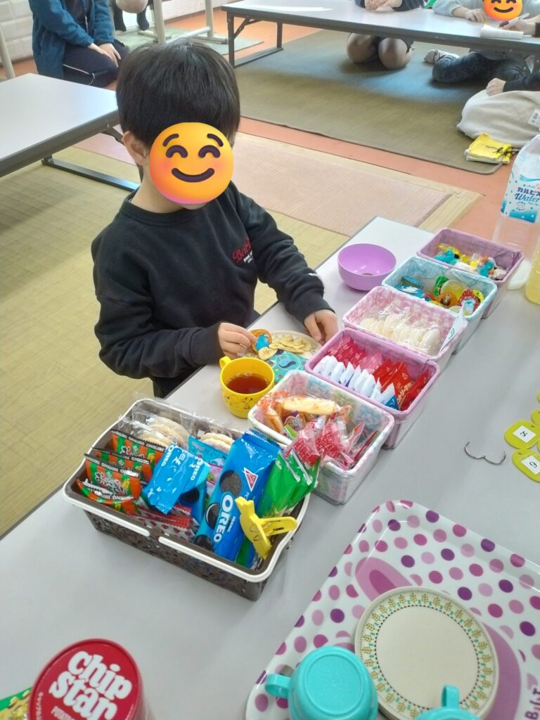 ブログ Blog サイト内の現在地 HOME ブログ 【おやつ】 ビオラ 2026.02.27 【おやつ】 おやつの時間は手を洗った人から札をもらって着席します。番号を呼ばれた人は前に来てお買い物をします。おもちゃの10円を10枚もらってお買い物スタート!待ち時間に札を落とした人は最後というルールも定着しました。 前へ 一覧へ 次へ
