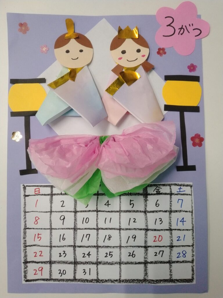 ブログ Blog サイト内の現在地 HOME ブログ 【工作】3月のカレンダーを作りました☆ ビオラ 2026.02.28 【工作】3月のカレンダーを作りました☆ 3月は「ひなまつり」のカレンダーでした。細かいパーツがあったり、破れやすいお花紙があったりしてもなんのその。今回も上手に作り上げましたよ☆ 前へ 一覧へ 次へ