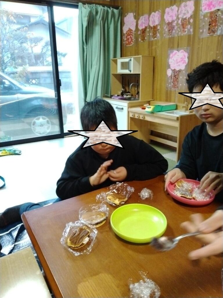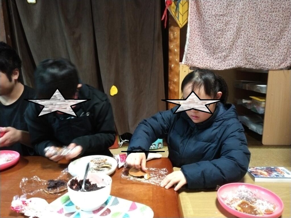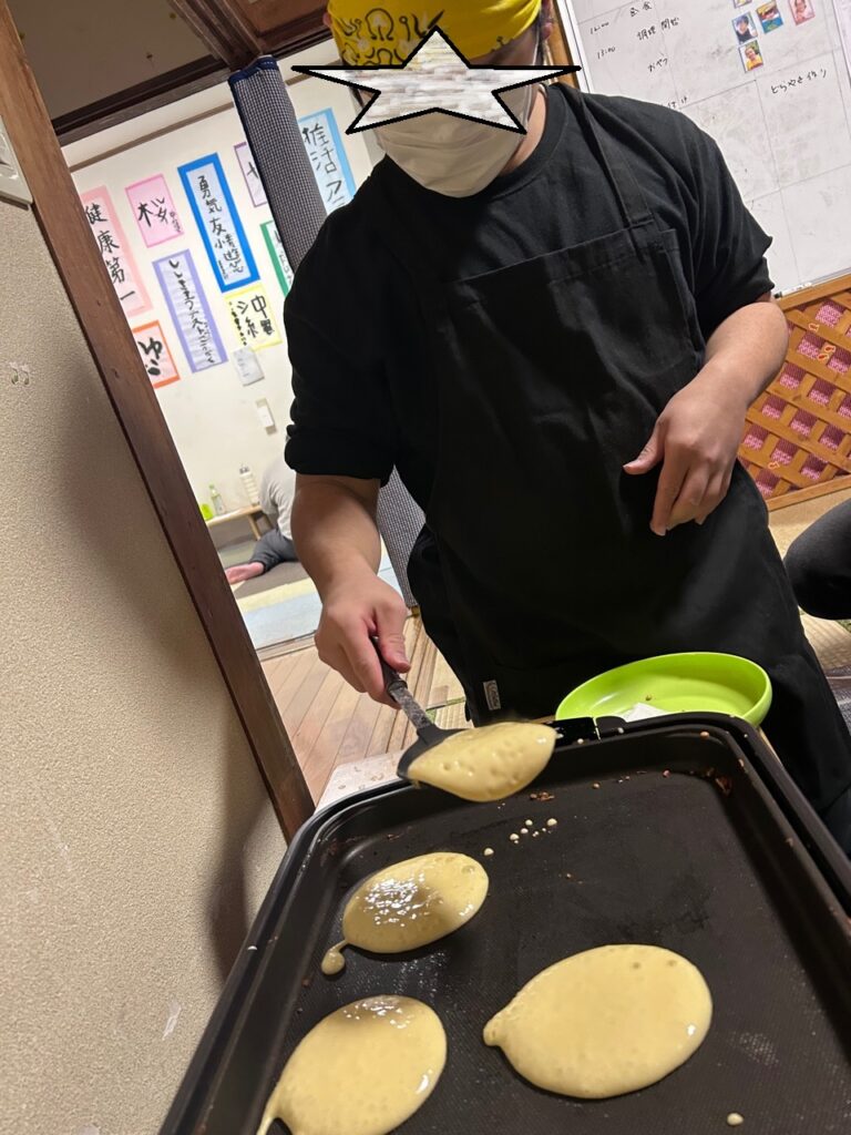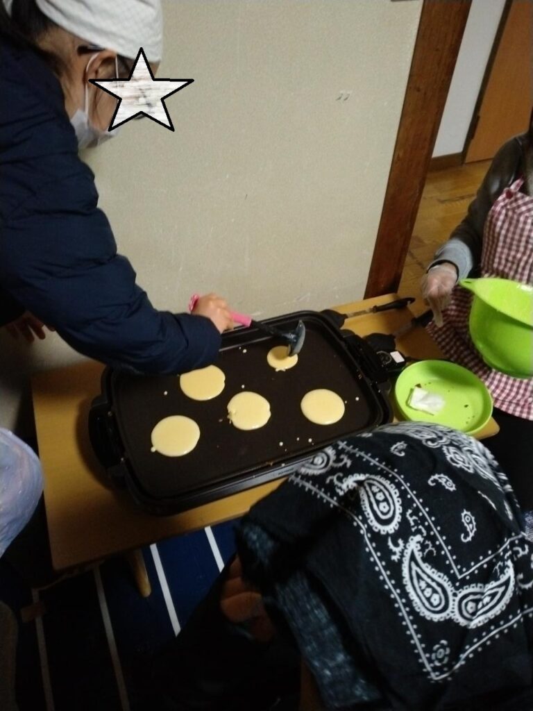 ブログ Blog サイト内の現在地 HOME ブログ 【1月12日(月祝)】どら焼き作り ひまわり 2026.01.12 【1月12日(月祝)】どら焼き作り まずはどら焼きの生地つくり。計量しながらボウルに入れます。 みりんを入れるんですね。 で、焼きます。表裏をしっかりと。なんとみんなの分を焼くまでに、1時間ひたすら焼き続けました。 焼いた生地に、生クリームや、あんこを挟み そうそうこんな感じ あんこが苦手な子は、パンケーキ風 で、こんな感じで食べるのです。 最後のお片付けも手伝ってくれて、本当にありがとう。 前へ 一覧へ 次へ