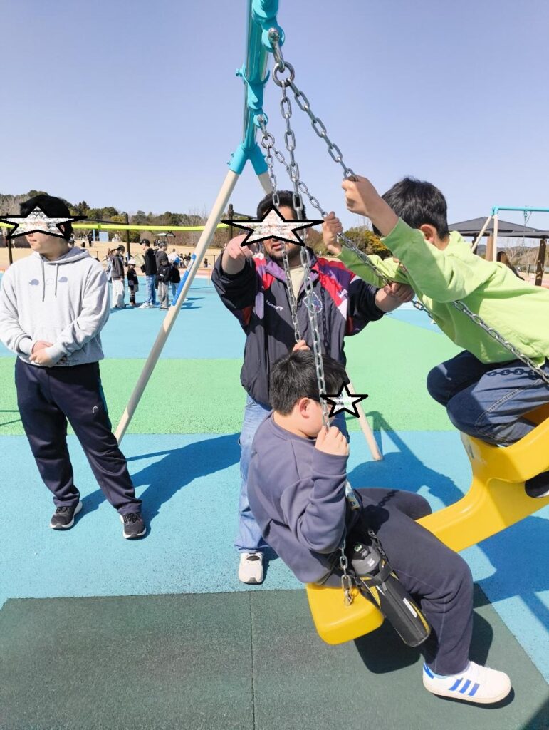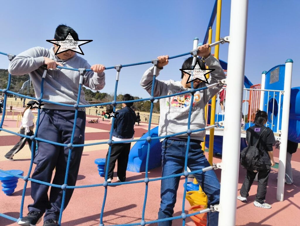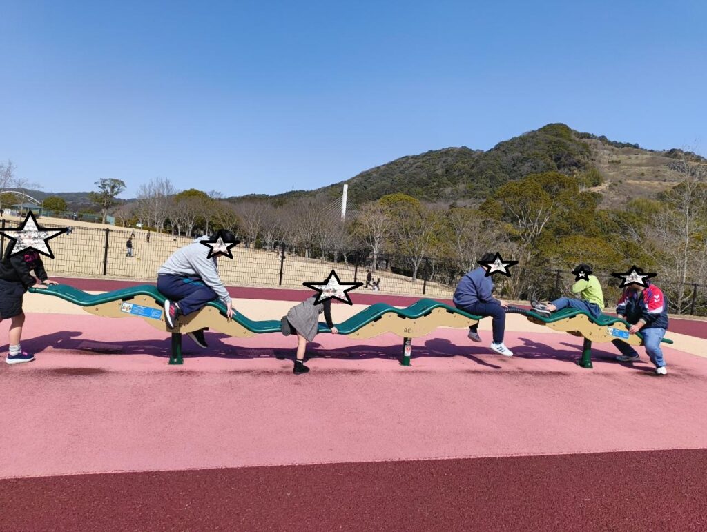 ブログ Blog サイト内の現在地 HOME ブログ (2月23日月曜日/祝日)公園遊びと石炭ソフト ひまわり 2026.02.23 (2月23日月曜日/祝日)公園遊びと石炭ソフト 今日は2グループに分かれての活動を行いました。 まずは、グループ「きゃぴ♡きゃぴ」チームは、那珂川市の公園にての様子です。 近くに新幹線の車両基地があって、新幹線型の遊具や、博多南駅には、顔出しパネルがありました!! では、もう一つのグループ「チームいぶし銀」の様子。 いぶし銀メンバーは、筑豊緑地に行きました。 で、筑豊ですので、筑豊といえば、石炭。石炭にちなんだ、真っ黒のソフトクリームを食べました。 ちなみに、チョコレートアイスに竹炭を混ぜているので黒いのです。 では、お歯黒ボーイズ3連単。 前へ 一覧へ 次へ
